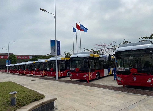 双源无轨都会客车的交付开启了华南地区绿色公交的新篇章,,,将进一步助力广东地区绿色、清静、高效的公路交通系统周全升级,,,为整个行业带来利好之风,,,为蹊径客运升级带去立体化解决之道。。。。